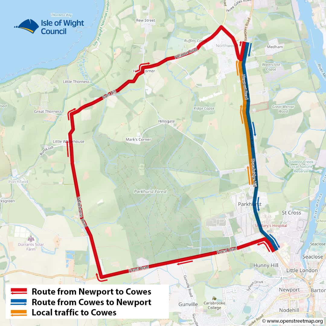 The Isle of Wight council has today (Tuesday) released a map showing the diversion route for drivers travelling between Newport and Cowes during the upcoming roadworks at Horsebridge Hill.