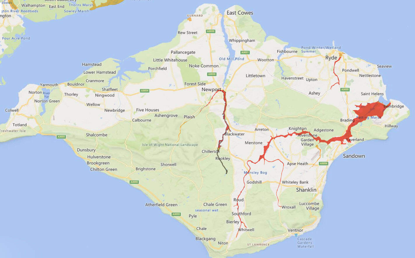 Avoid low lying roads near rivers, which may be flooded . Including Marsh Road, Gurnard.