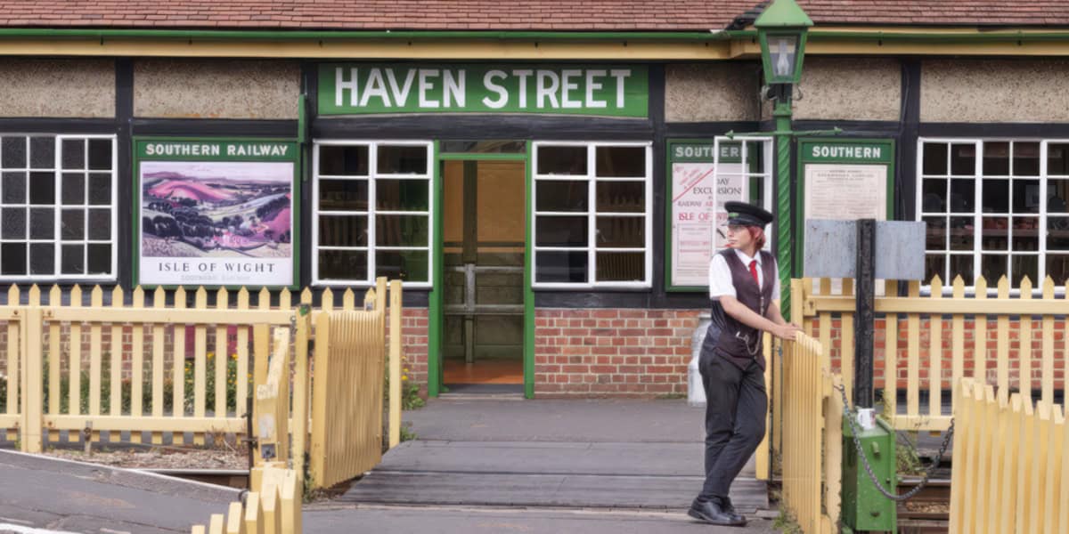 Havenstreet Station is open to the public, restored and run by the Isle of Wight Steam Railway. Many key features including the lever frame, ticket counter, furniture, and the ticket window, are believed to be original.
