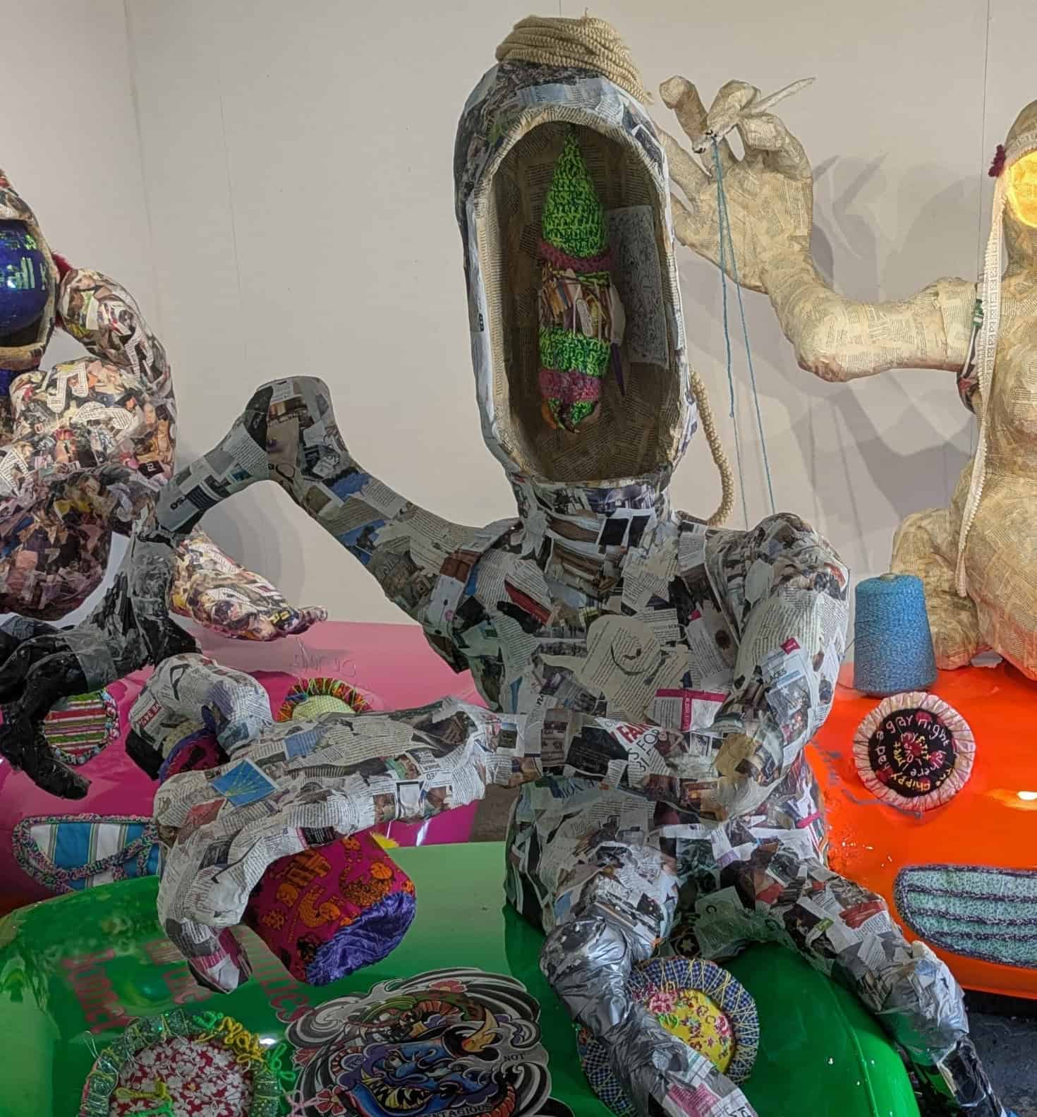His installation mixes playfulness with poignancy, stitching together the visible and invisible to create a multi-layered expression of community voices.