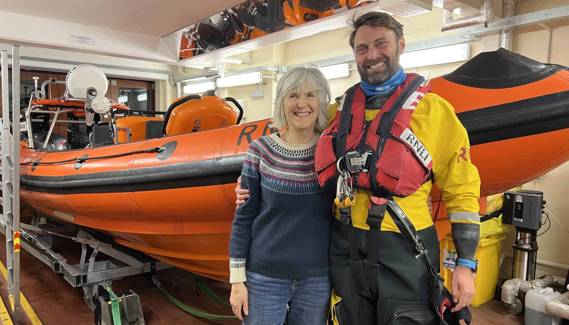 Penny Jeffcoate, trainee navigator, is pictured below with her son, Ben. Having spent her life on the water, sailing, racing and working as a maritime engineer, Penny joined the RNLI in 2019, hoping to bring any expertise she had towards helping others at sea.