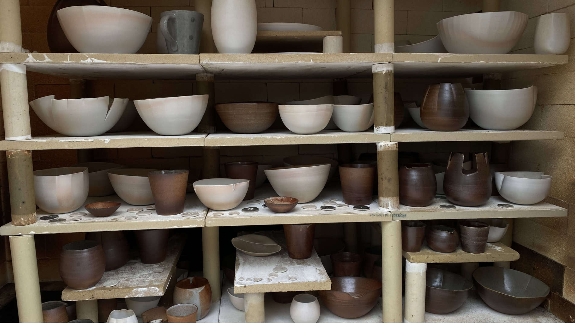 Her practice combines traditional wheel-throwing techniques with experimental firing processes, including wood-firing and reduction atmospheres, to achieve distinctive finishes.